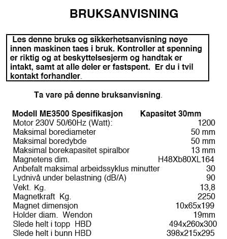 Bruksanvisning for ME7500 kjerneboremaskin
